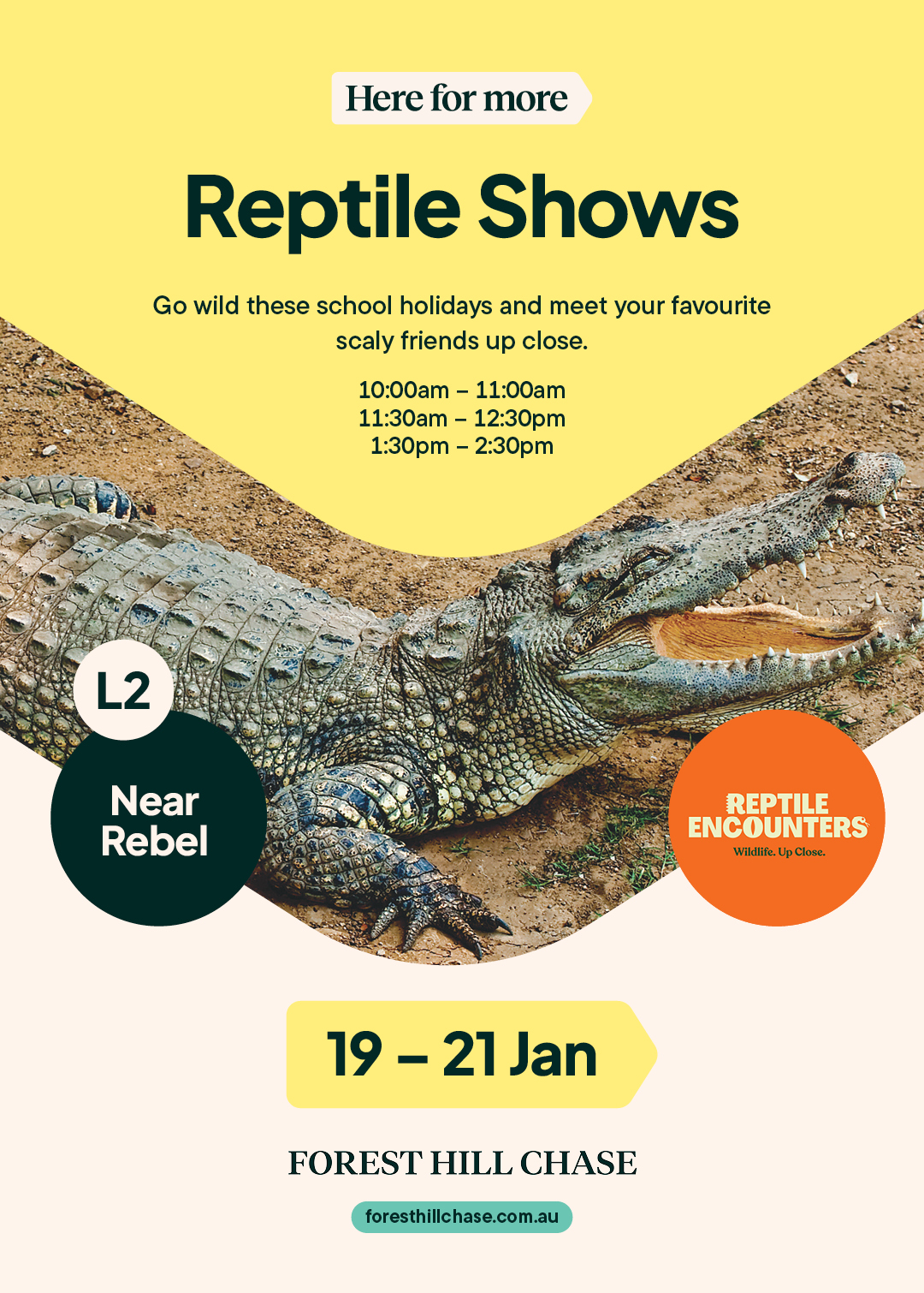 Go wild these school holidays and meet your favourite scaly friends up close. Shows are on at: